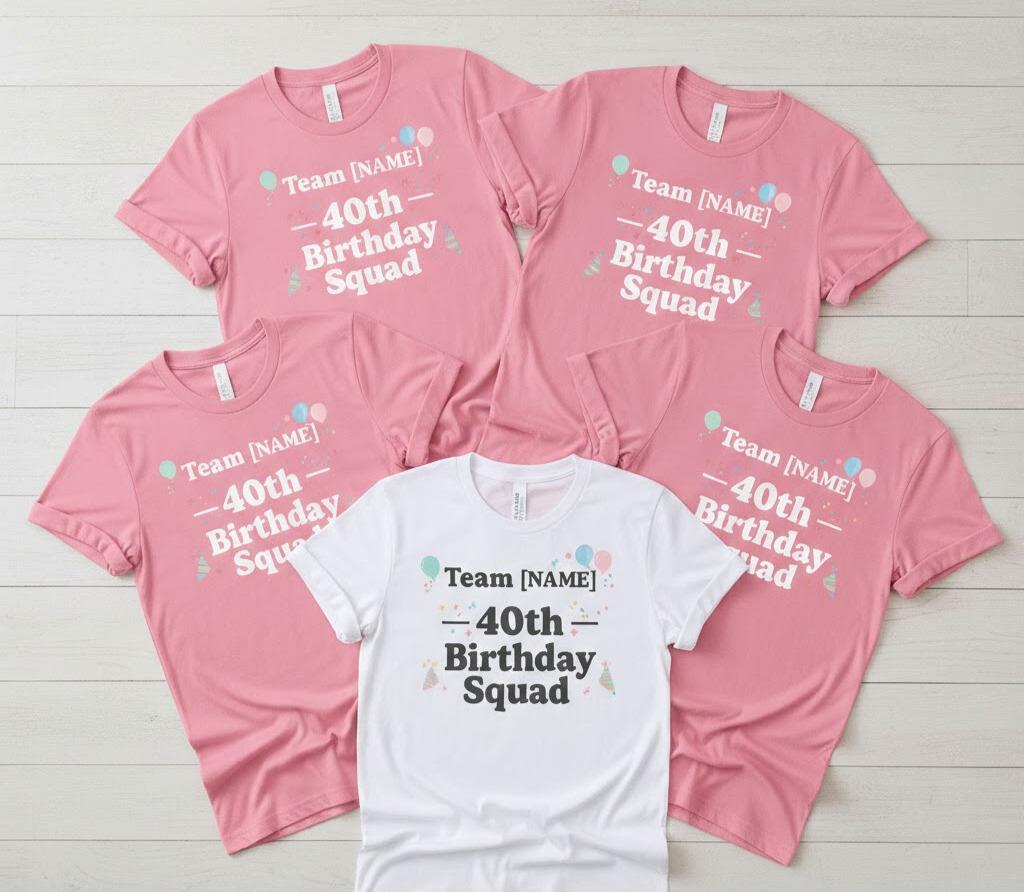 10. “Team [Name] – 40th Birthday Squad” T-Shirt