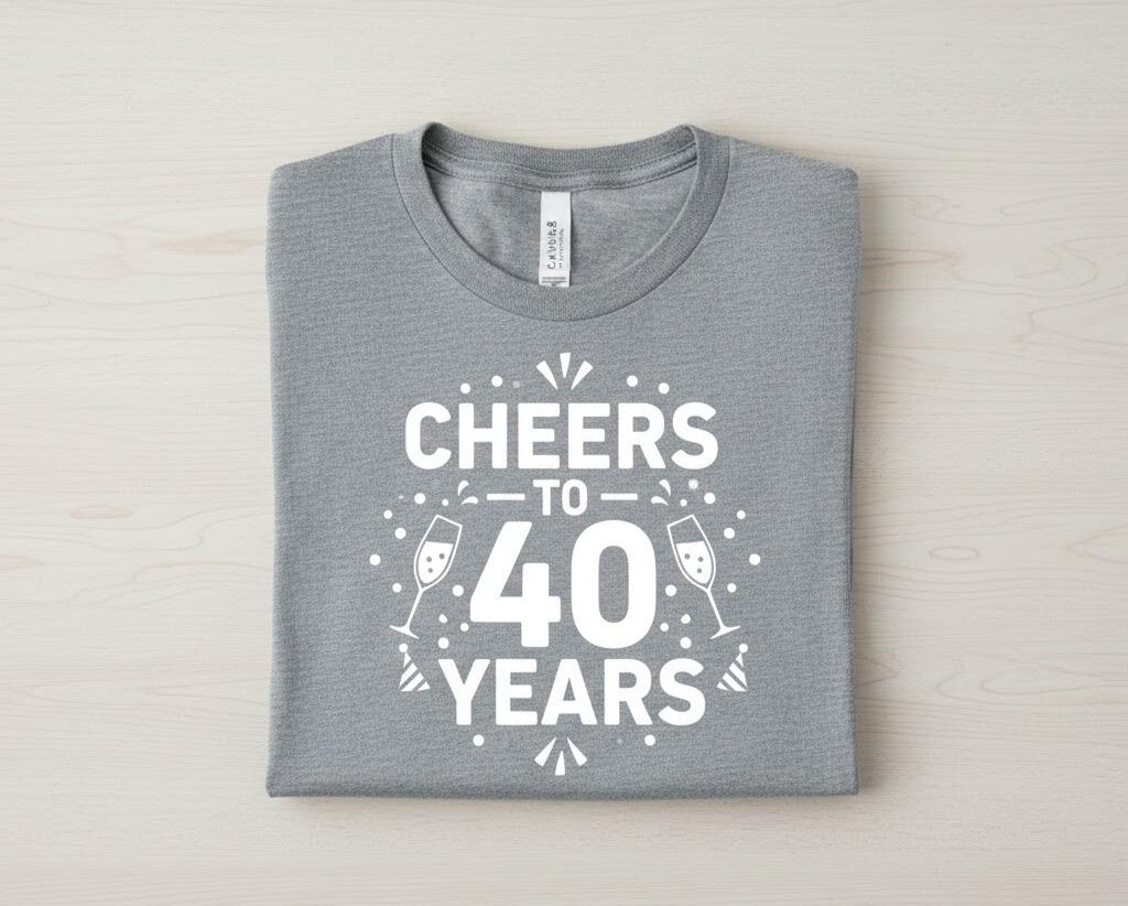 A “Cheers to 40 Years” t-shirt Limited edition funny and drinking tee, can be given at a good friend’s birthday party. It establishes the mood for a laid-back party. The artwork can depict different kinds of drinking glasses, bottle shapes, or even party symbols.