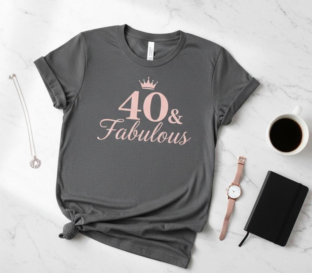 The “40 & Fabulous” t-shirt shows confidence and positivity. It gives a powerful message that one should be proud of their old age rather than making fun of it.