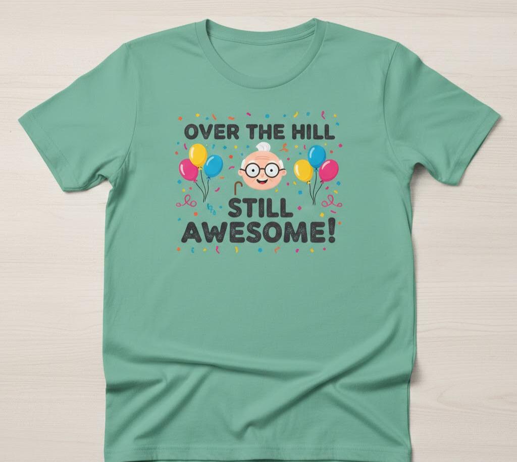Classic birthday humour never gets old. An “Over the Hill” t-shirt is a way of sharing a little fun that is neither offensive nor too much.