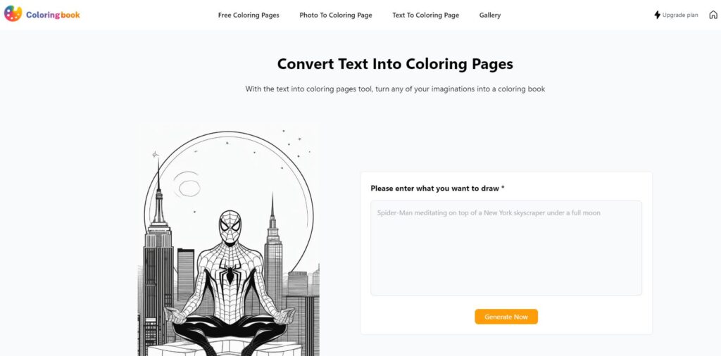 Another impressive feature of ColoringBook.ai is its text-to-colouring page functionality. This tool allows users to describe a scene or concept in words, which the AI then transforms into a detailed colouring page.