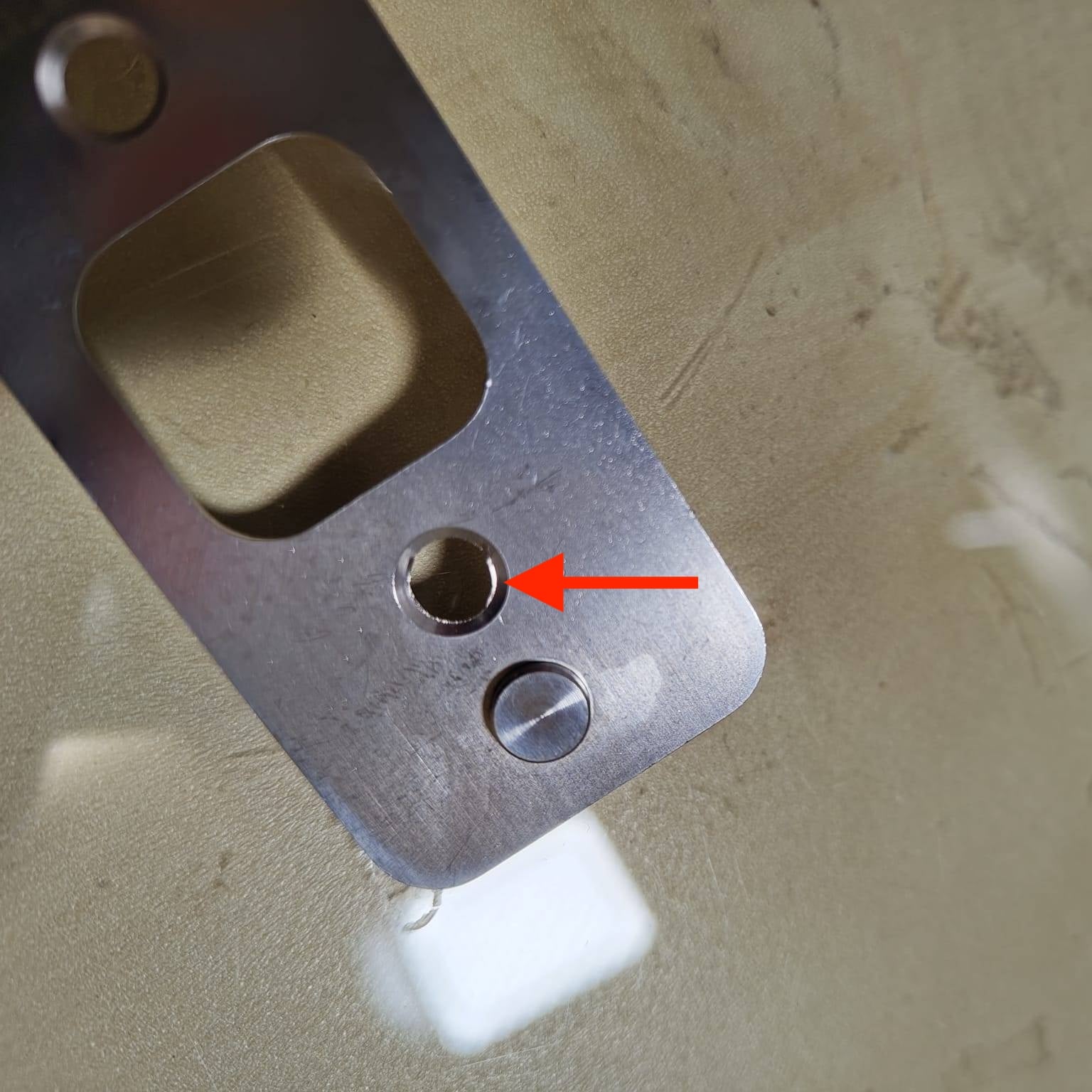 • Frayed metal around countersunk hole – Minor roughness or fraying around the screw recess where the countersink was not as clean as our usual finish. Fully usable but not cosmetically perfect.