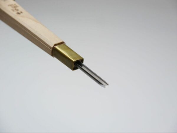 Michihamono – Japanese Woodblock Print Chisel Linocut Tools – V Gouge 4.5mm is crafted by Michihamono in Japan, bringing traditional forging to modern printmaking. The lino cutting tool blade is hand-forged from high-carbon steel for exceptional sharpness, control and edge retention, making it equally at home in woodblock printing and linocut.