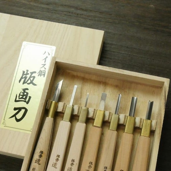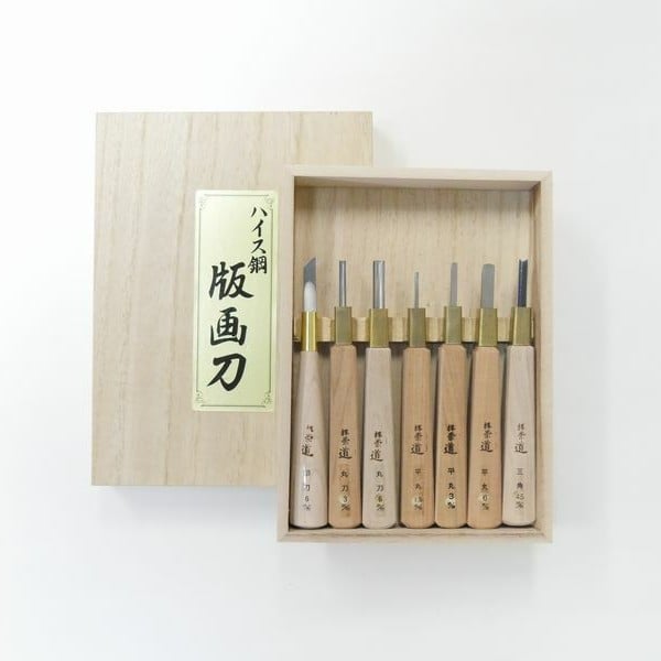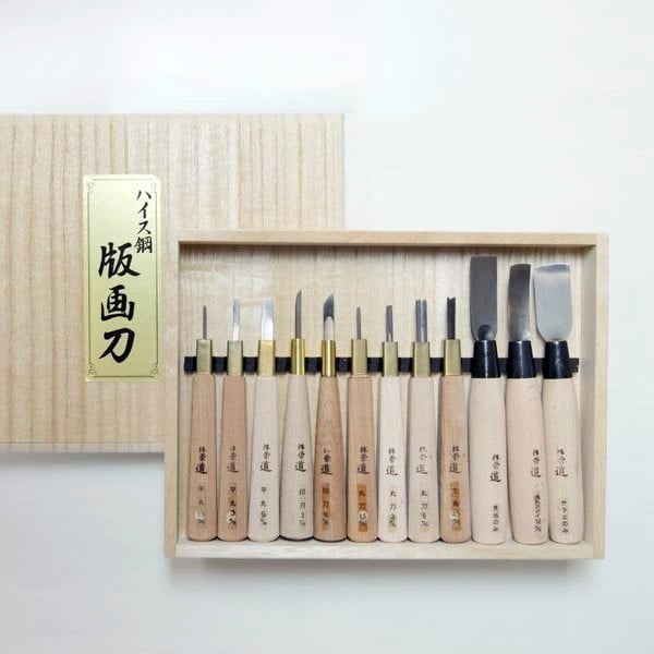 Supplied in a paulownia wood box, these sets are also a popular choice as a premium gift for printmakers, students progressing to higher-quality tools, or collectors of Japanese craft tools.