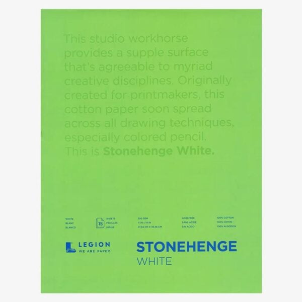 Experience the versatile and timeless quality of Stonehenge, a 100% cotton fine art paper designed to meet the demands of both printmakers and mixed media artists. Originally developed as an alternative to European mould-made papers, Stonehenge has gained popularity among those seeking a reliable surface for a variety of artistic techniques. Made in the US, each sheet is acid and chlorine free, pH neutral, and buffered with calcium carbonate for enduring excellence.