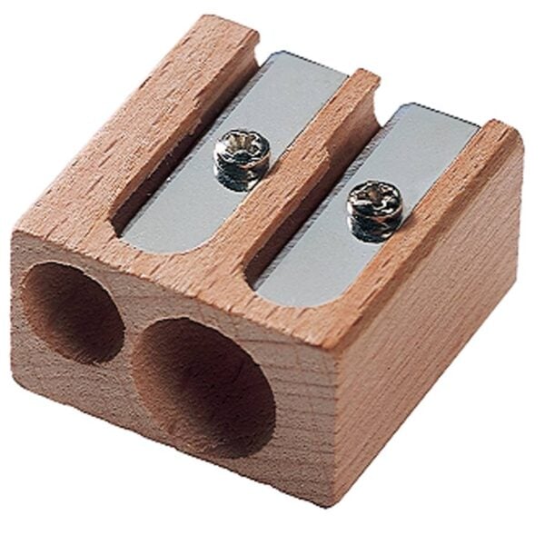 The sturdy beechwood body offers a comfortable and stylish grip, while the twin holes make it versatile for various pencil types, from graphite to coloured pencils. Each hole is fitted with a durable steel blade, ensuring a smooth, precise sharpen for both fine and broader points.
